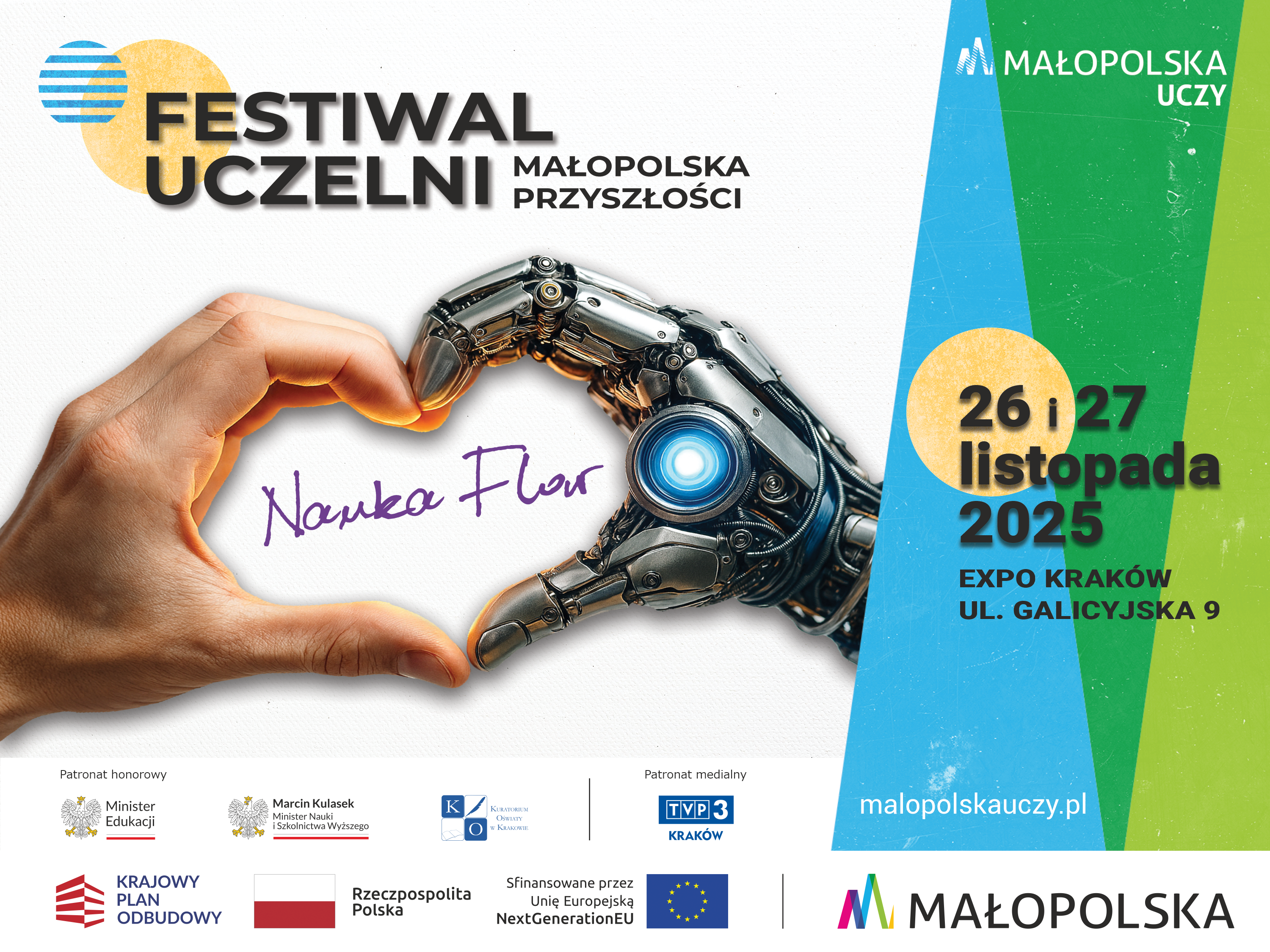 26 i 27 listopada 2025 r. w EXPO Kraków, ul. Galicyjska 9 odbędzie się druga edycja targów edukacyjnych pn. Festiwal Uczelni - Małopolska Przyszłości.